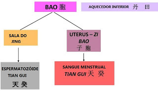 O texto clássico, portanto, deixa claro que Bao é uma estrutura comum a homens e mulheres, os homens associados a “Sala do Jing” ( ou sala do espermatozoide e as mulheres ao útero. A “Sala do espermatozoide fica no aquecedor inferior, mas sabemos que eles são produzidos nos testículos, vesícula seminal e próstata. Creio que isso nos leva a entender que a próstata é uma estrutura equivalente ao útero e, portanto, o Du mai, Ren Mai e Chong Mai passam por ela.